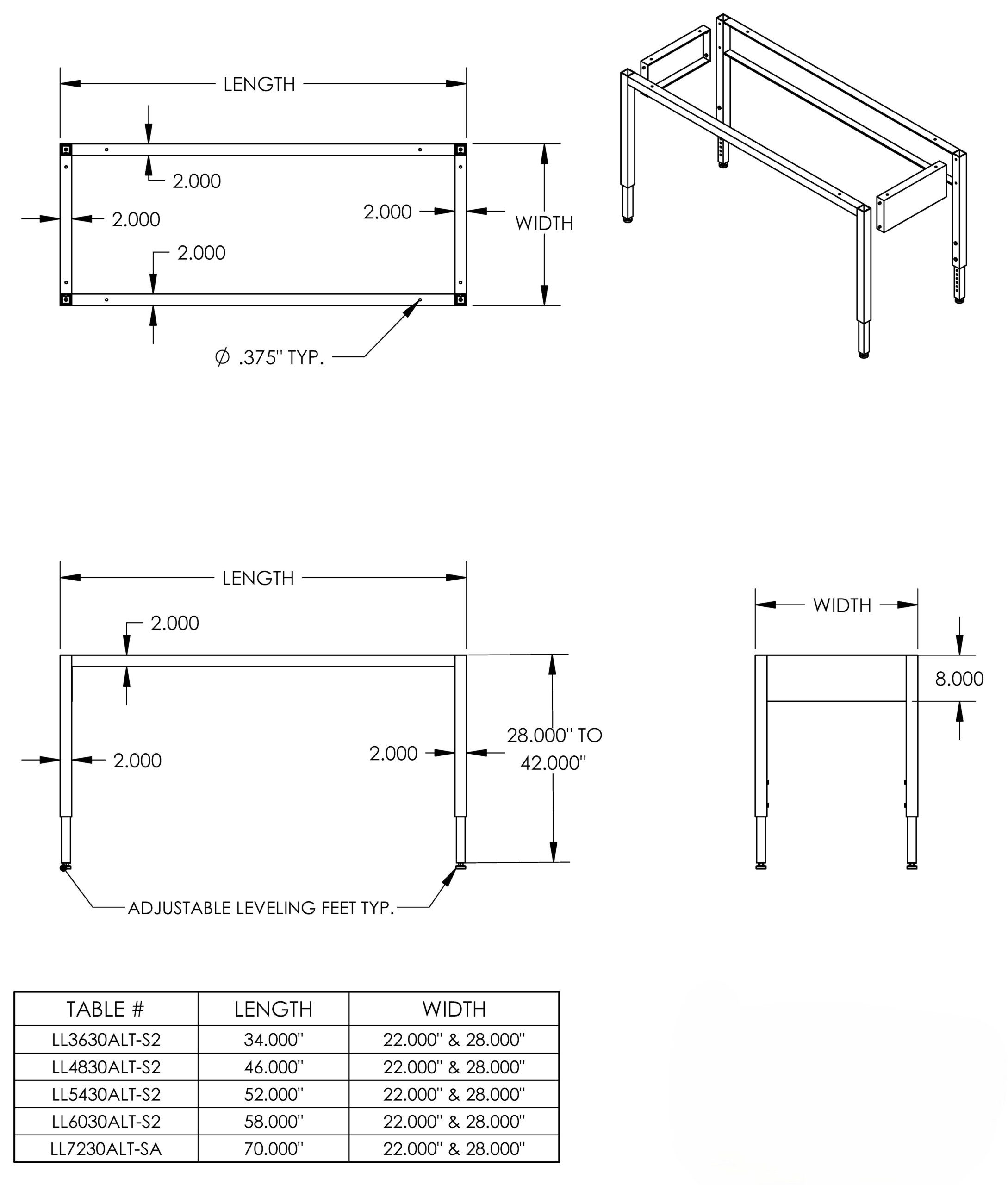 The 72″ x 60″ Adjustable Leg Table (ALT) frame delivers durable, modular support for laboratory, technical, and educational environments. Designed for strength and flexibility, this frame allows for adjustable height configurations while maintaining structural integrity under demanding workloads.