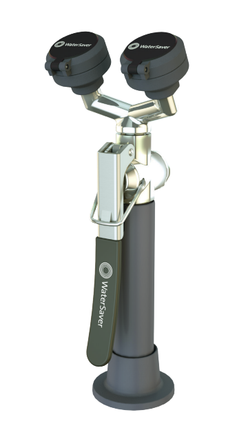 This laboratory eyewash faucet provides emergency flushing capability while incorporating built-in flow prevention for enhanced safety compliance. Designed for deck-mounted installation, it delivers controlled water flow through dual spray heads for effective emergency response.