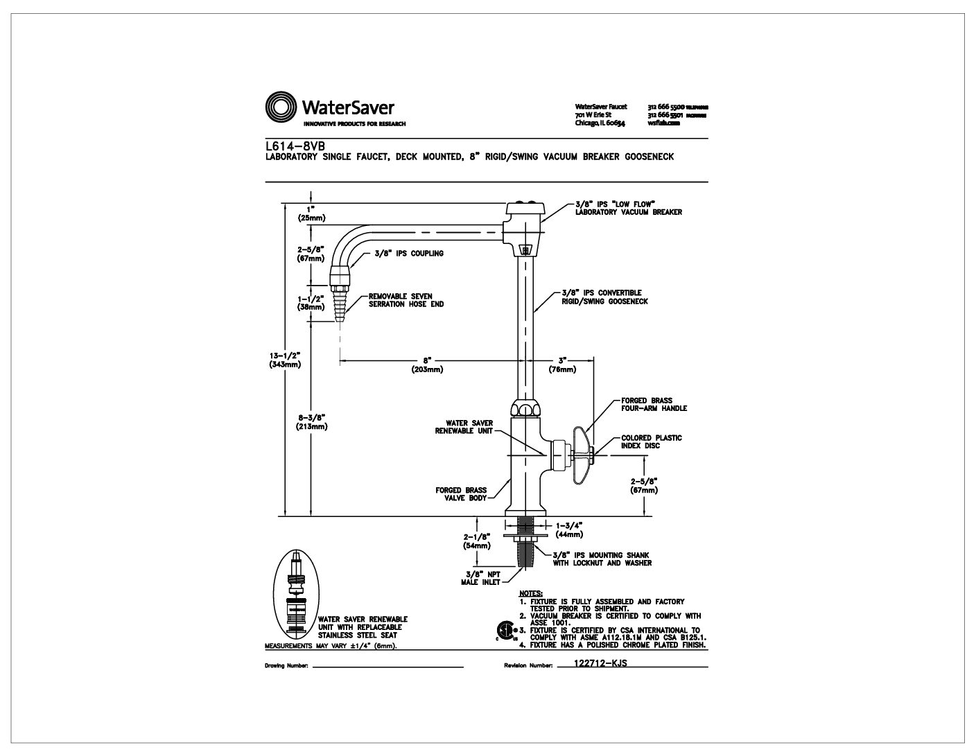 HomeHanson Express StoreSinks, Plumbing & Lab AccessoriesPlumbing AccessoriesCold Water Faucet – 8″Rigid/Swing Gooseneck (w/Vac Breaker)