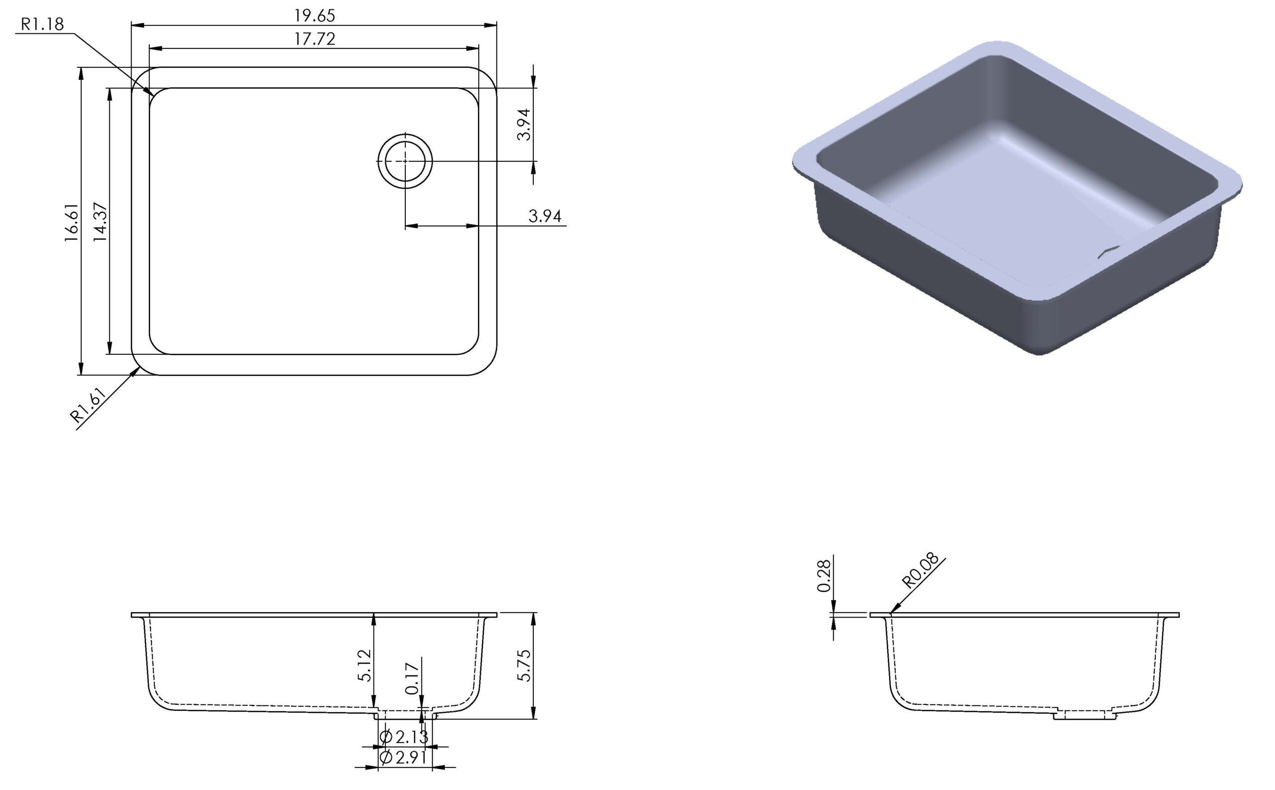 This 18″ epoxy sink features a drop-in installation design that simplifies sealing while supporting ADA-compliant laboratory workstations and chemical-resistant performance.