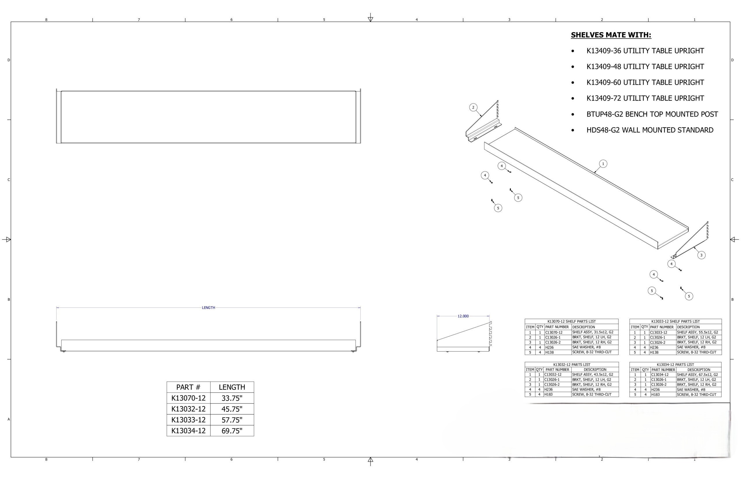 • Shelving Kit for 60" Wide Table (Mount Required)
